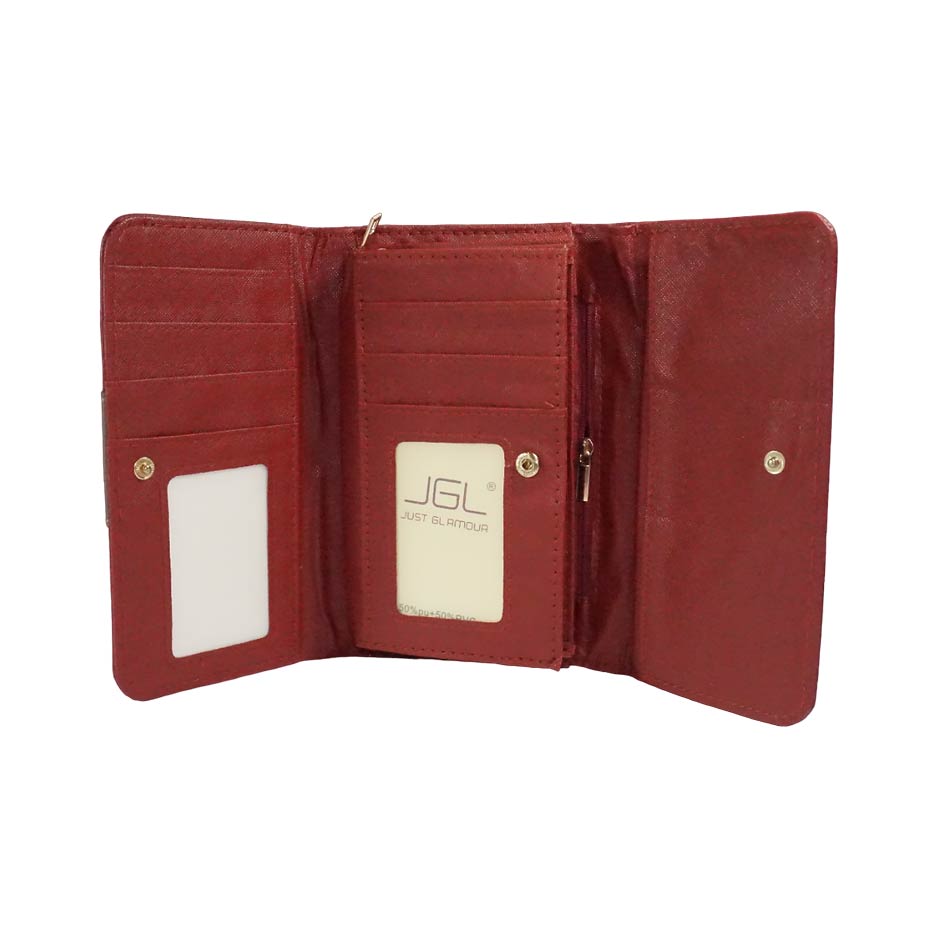 Elegant women’s wallet, with numerous compartments for cards, coins, and banknotes. Comes in various colors.